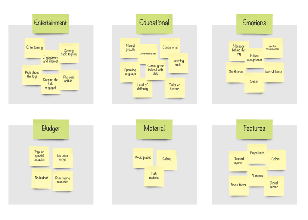 | What different games can we incorporate in the UI? | Risk of the child using the toy excessively? | Can the toy be used inside, outside, or both? |