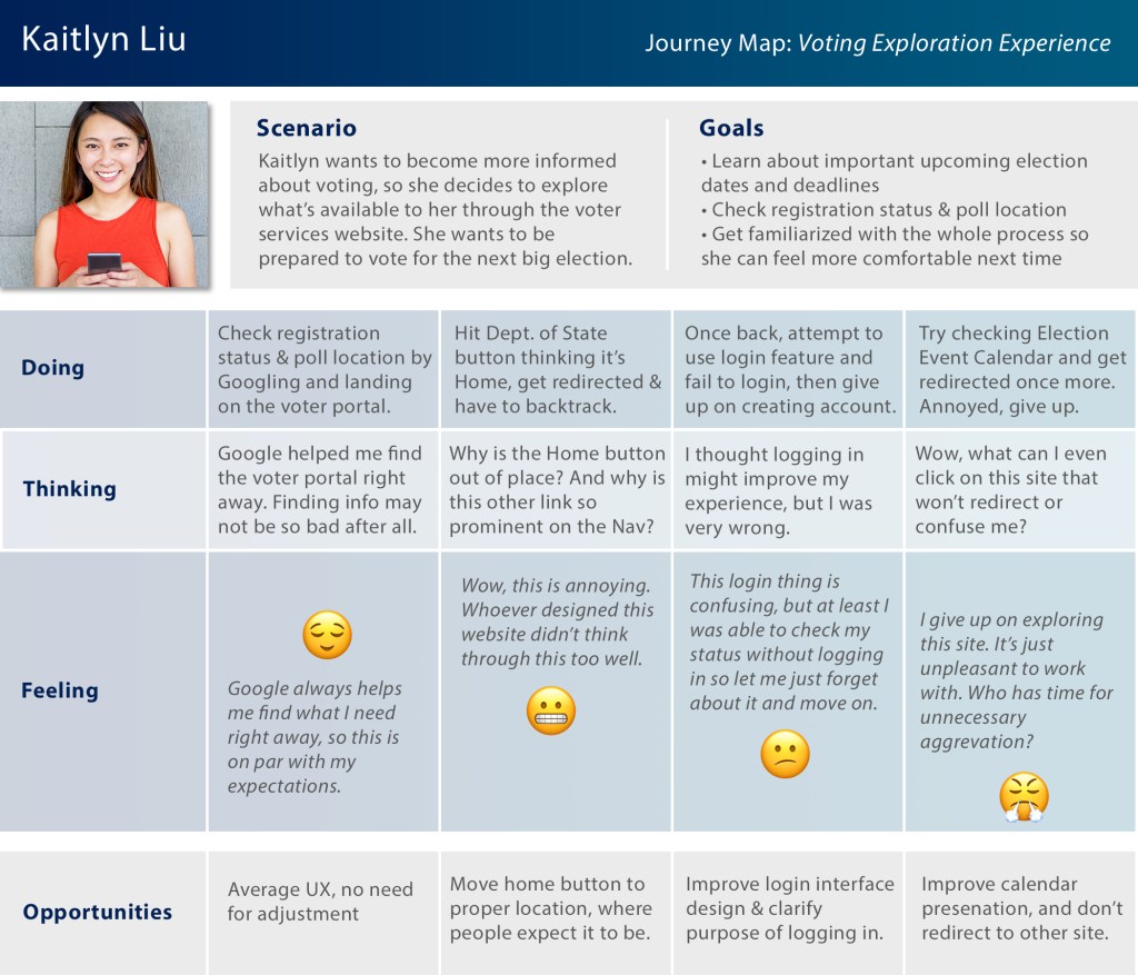 - What features do you think the site should have as a voter services portal? Can you name something you like about the website’s current functionality? How about something you dislike and/or think needs improvement?
